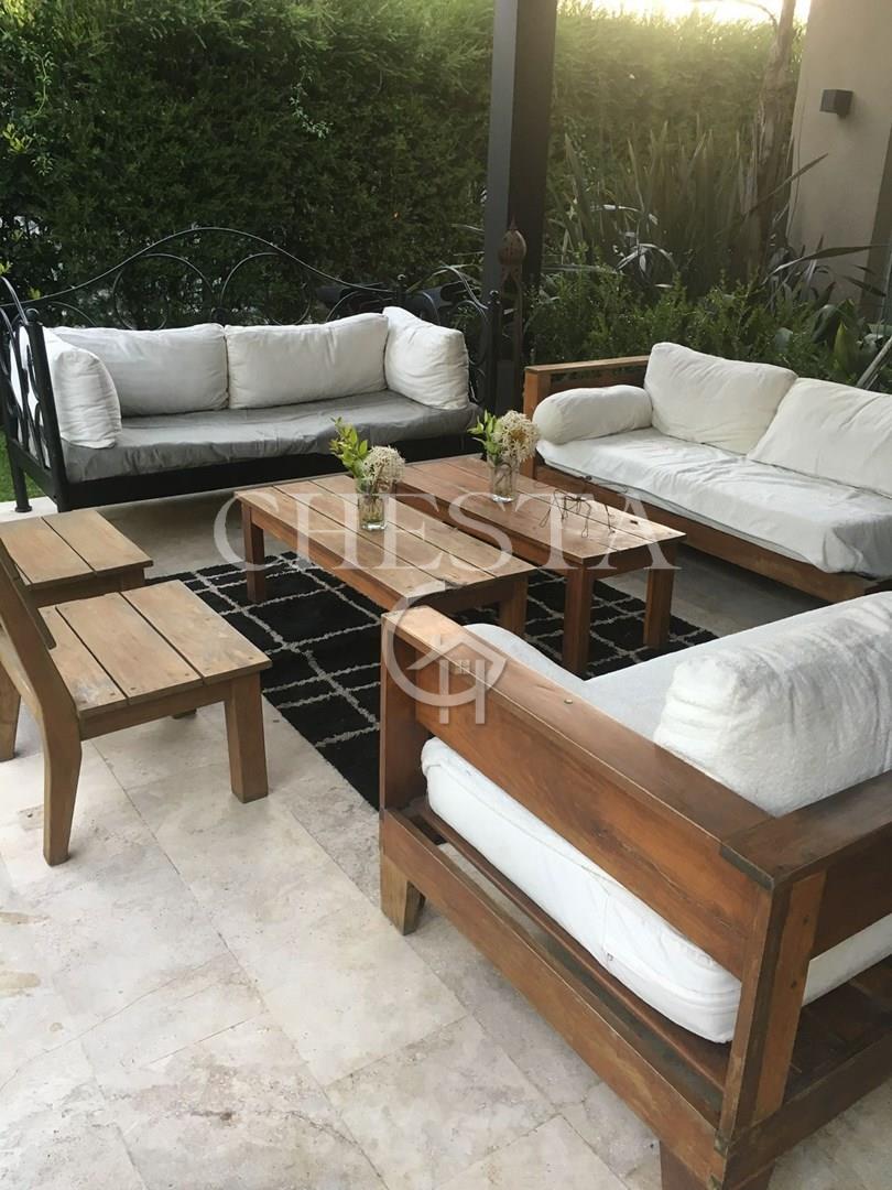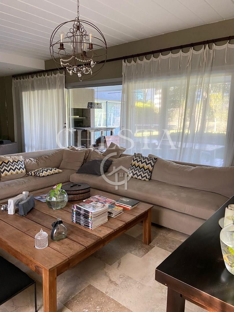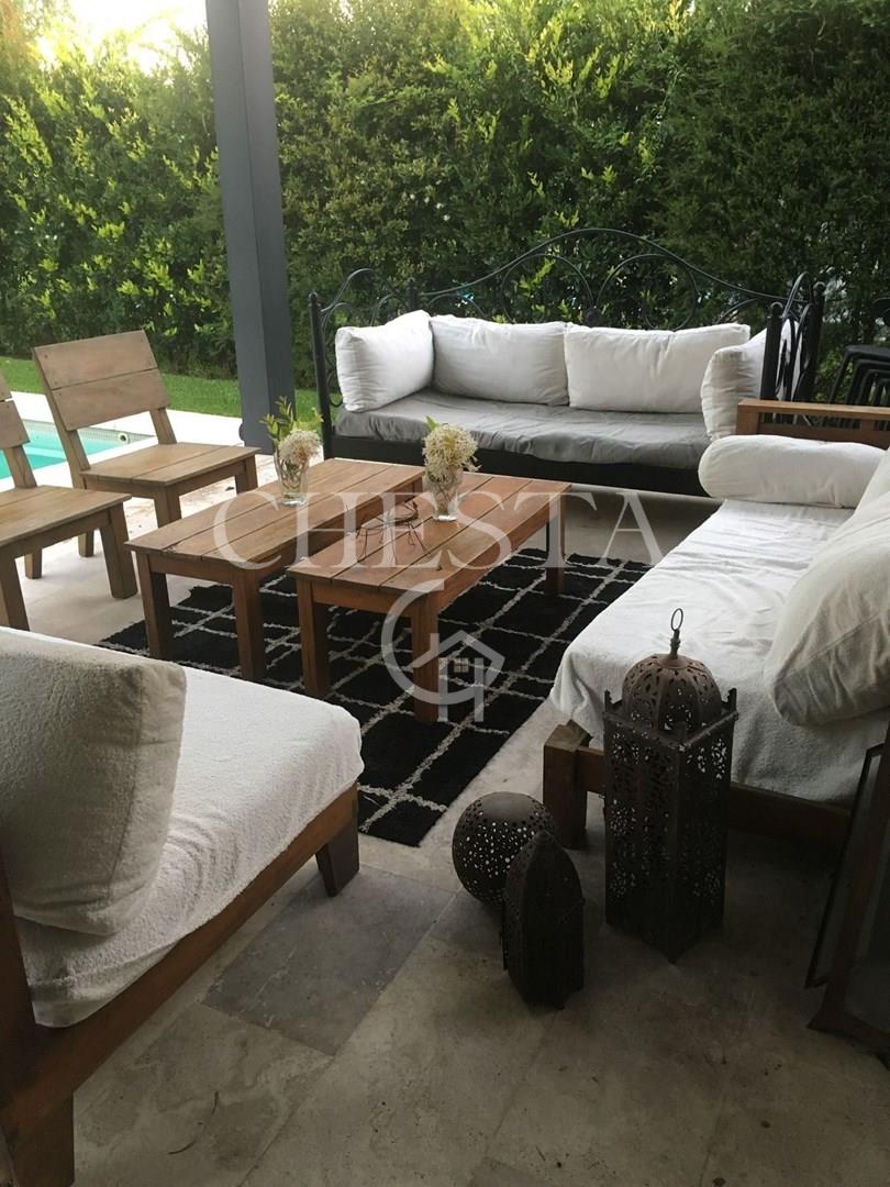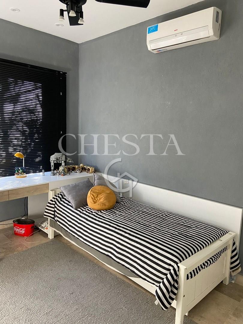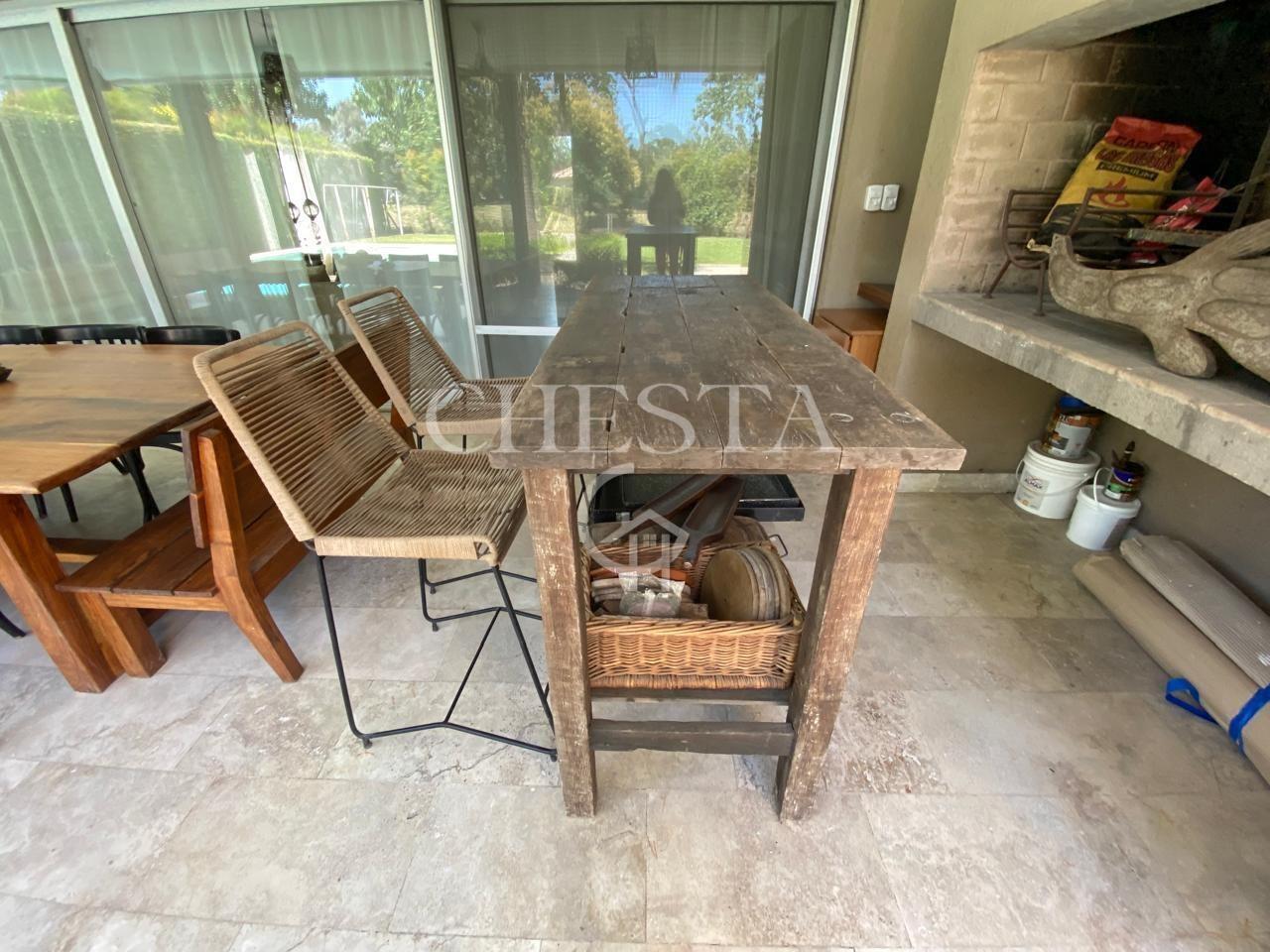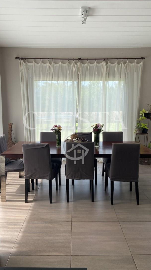 BELLISIMA Y MODERNA PROPIEDAD EN ALQUILER Y VENTA UBICADA EN EL PRESTIGIOSO BARRIO AYRES DE PILAR, LA TRANQUERA. DESARROLLADA EN DOS PLANTAS. INTERIOR: PLANTA BAJA NOS ENCONTRAMOS CON UN AMPLIO LIVING - COMEDOR DE IMPORTANTES DIMENSIONES, IDEAL PARA REUNIONES FAMILIARES, CON GRANDES VENTANALES CON VISTA AL JARDIN, GRAN COCINA COMEDOR CON ISLA / BARRA DESAYUNADORA, FAMILY, ALACENAS CON CAPACIDAD DE GUARDADO, CON ESPACIO PARA LAVAVAJILLA . ESCRITORIO/DORMITORIO CON VISTA AL JARDIN, TOILETTE DE RECEPCION. LAVADERO CON SALIDA EXTERIOR Y DEPENDENCIA CON BAÑO COMPLETO. PLANTA ALTA: HALL DE DISTRIBUCION, 1 SUITE PRINCIPAL CON PLACARD Y VESTIDOR GRANDES VENTANALES AL FRENTE Y JARDIN, DETALLES DECORATIVOS EN PARED PRINCIPAL, SIMIL MADERA, 3 DORMITORIOS SECUNDARIOS EN SUITE CON PLACARD, ALGUNOS DE ELLOS CON ESPACIO VESTIDOR, BAÑOS COMPLETOS. TODOS LOS AMBIENTES POSEEN VISTA AL JARDIN O AL FRENTE, MUY LUMINOSOS. EXTERIOR: CUENTA CON UNA AMPLIA GALERIA TECHADA CON PARRILLA, UN GRAN PARQUE Y UNA AMPLIA PISCINA CON FILTRO AUTOMATICO, REVESTIDA CON VENECITAS . DETALLES DE CONSTRUCCION: TODAS LAS ABERTURAS TIENEN DVH. CON HERRAJES DE SEGURIDAD DESDE EL INTERIOR. PISOS TRAVERTINO Y PORCELANATO. CALEFACCION POR LOSA RADIANTE CALDERA DUAL . AA EN TODOS LOS AMBIENTES. APLIQUES DE ILUMINACION, BARRALES DE CORTINAS, BLACKOUT, EN LA MAYORIA DE LOS AMBIENTES. 2 COCHERAS SEMICUBIERTAS. Lote 920m2 Superficie cubierta 270m2 Superficie semicubierta 120m2 Sup. Homogeneizada 330 (se calcula la superficie semicubierta al 50%). Ayres de Pilar es un barrio privado por excelencia, ubicado con acceso directo en el Km. 43,5 de la Autopista Panamericana, Ramal Pilar. Posee180 hectáreas, 863 lotes de 1.000 m2 de promedio, agrupados en 22 comunidades, El barrio ofrece una amplia infraestructura de servicios, social y deportiva. Tiene club House de adultos con restaurant y sector bar, dos salones de usos múltiples, anfiteatro club House de jóvenes con restaurant, guardería infantil, canchas de tenis de polvo de ladrillo y rápidas, canchas de futbol, cancha de paddle, squash, gimnasio, piscina de adultos y de niños con solárium, minimarket, circuito de 6 km para correr o andar en bicicleta. Pilar cuenta con entorno ideal para poder disfrutar de una vida al aire libre y a la vez conectados con las actividades diarias ya que cuenta con Colegios, universidades, Oficinas, Centros comerciales, zonas turísticas de lo mas variadas, etc. Ayres de Pilar es un barrio con un diseño único y seguro. Acceso directo desde Panamericana, La calle principal permite 40 km/h. Lotes de grandes dimensiones con servicios y fibra óptica subterráneos. Las medidas indicadas son aproximadas, las medidas reales surgirán del título de propiedad respectivo. El valor del inmueble puede ser modificado sin previo aviso. La presente información y fotografías no constituyen documentación contractual. Podés contactarnos para asesoramiento o para coordinar una visita, cuando gustes: CHESTA PROPIEDADES 11 6801 4027 . El valor del inmueble puede ser modificado sin previo aviso. La presente información y fotografías no constituyen documentación contractual. Podés contactarnos para asesoramiento o para coordinar una visita: CHESTA PROPIEDADES.