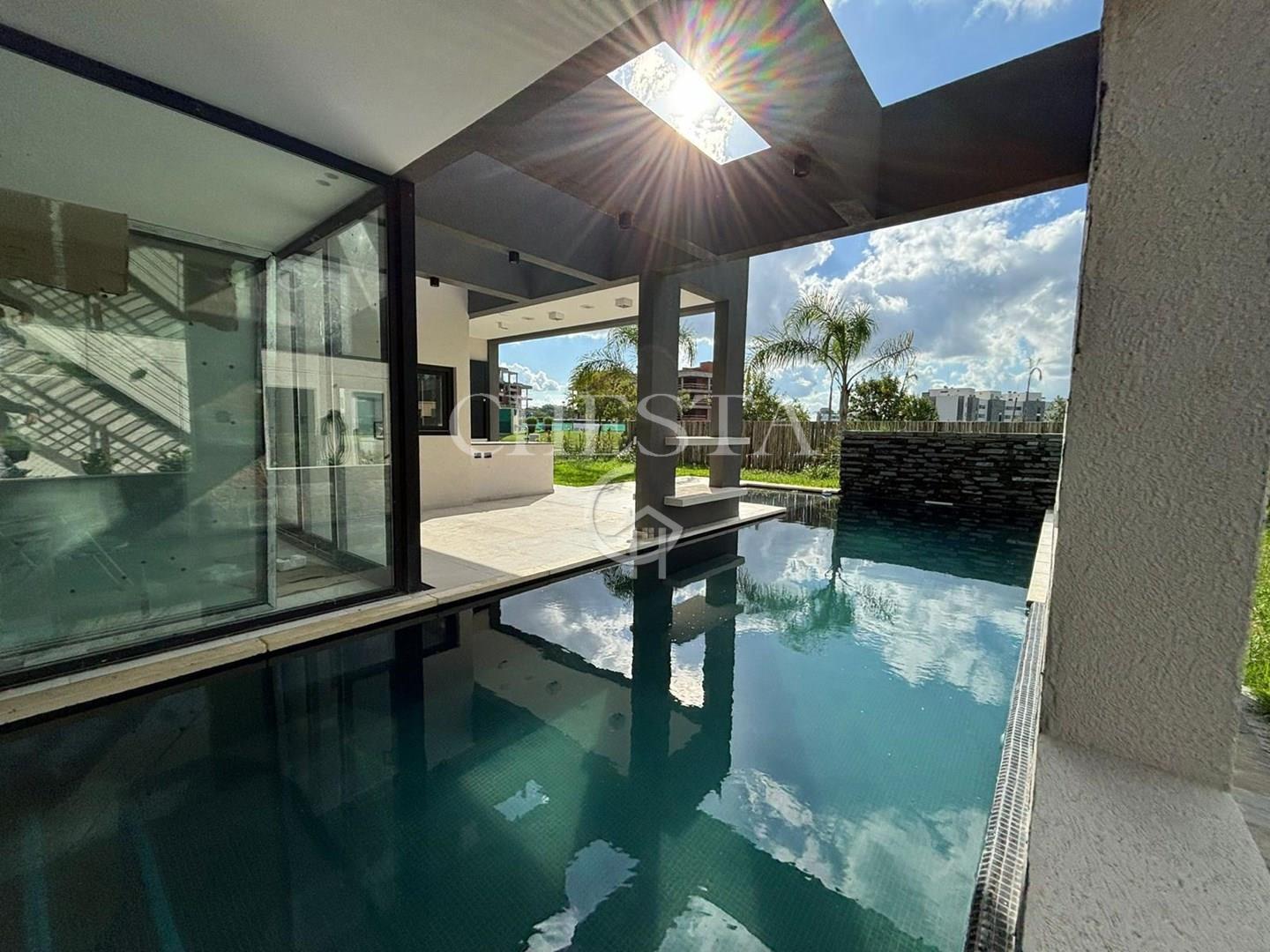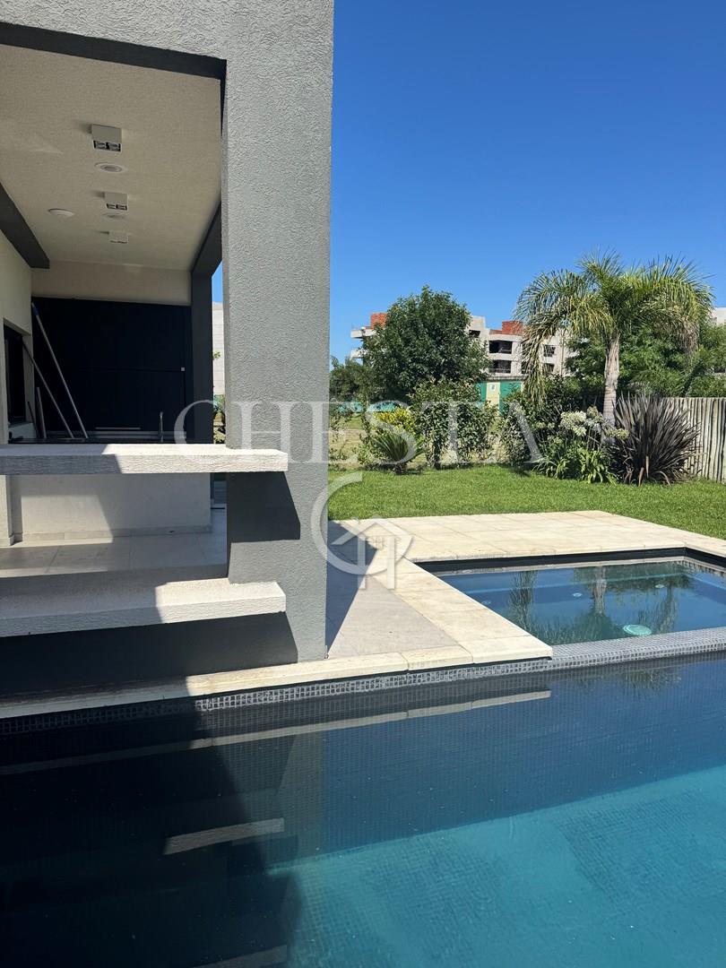 INCREIBLE PROPIEDAD A ESTRENAR EN LAGOON PILAR!!!VENTA/ ALQUILER, Se trata de una construción estilo moderno, desarrollada en 2 plantas, la puerta principla realizada con carpinteria en madera maciza, moderna, segura sin bisagras, confeccionada a medida, encolada con cerradura digital. PB Living comedor integrado, concepto abierto, con bellisimos ventales DVH, a la piscina, y el entorno natural exterior, toilete, amplio escritorio/ family, cocina comedor con isla, más un mesada de carpinteria con madera maciza, laquedada, alacenas, de color azul oscuro laquedo, las mismas realizan un muy buen contraste decorativo con el ambiente en Gral, horno empotrado y anafe, Griferia de Alta gama, Amplio y muy bonito lavadero, con espacio de guardado, cuenta con apliques de iluminacion, en todos sus ambientes, teclados digitales de encendido regulable. Todos los espacios de esta plata, permiten salida el sector exterior, donde nos encontramos con una piscina de venicitas y yacuzzi, en un entorno decorativo, moderno y acogedor, cascada/ fuente con paredes en piedras, realmente te invita a una jornada de meditación. Parrila con cerramientos, mesada con pileta de lavado, galeria y de baño completo. PA Se accede por una escalera con peldaños en pocelanato, cada uno de estos esta iluminado con apliques regulables, gran ventanal en el espacio de descanso, permitiendo ingresar la luz natural expterior, 1 suite princial con vestidor, baño compartimentado y yacuzzi, 2 dormitorios en suite, con placares completos, un dormitorio/ escritorio independiente, 1 baño completo. Los dormitorios que miran al jardin , cuentan balcón, permitiendo ver la laguna del Barrio. Cocheras en el frente para 2 autos. Esta propiedad esta construida en un lote cental prácticamente en esquina, atras de playa 3. El valor del inmueble puede ser modificado sin previo aviso. La presente información y fotografías no constituyen documentación contractual. Podés contactarnos para asesoramiento o para coordinar una visita: CHESTA PROPIEDADES - www.chestapropiedades.com.ar 11 6801 4027 . El valor del inmueble puede ser modificado sin previo aviso. La presente información y fotografías no constituyen documentación contractual. Podés contactarnos para asesoramiento o para coordinar una visita: CHESTA PROPIEDADES.